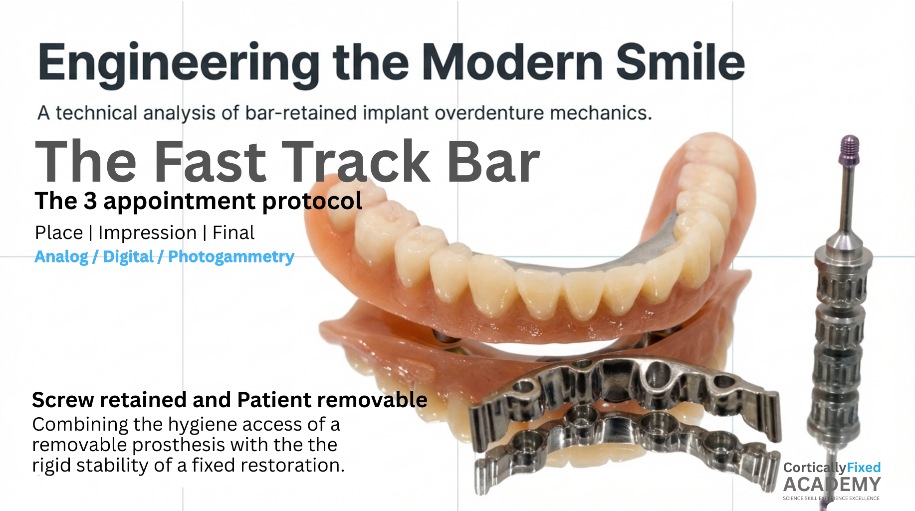 Primary benefits of the Fast Track Bar is its ability to facilitate fewer treatments (4 appointments) and reduce loading times. The FTB allows for the earlier placement of a prosthesis, which can significantly enhance the overall treatment timeline and is cost effective. patient satisfaction.